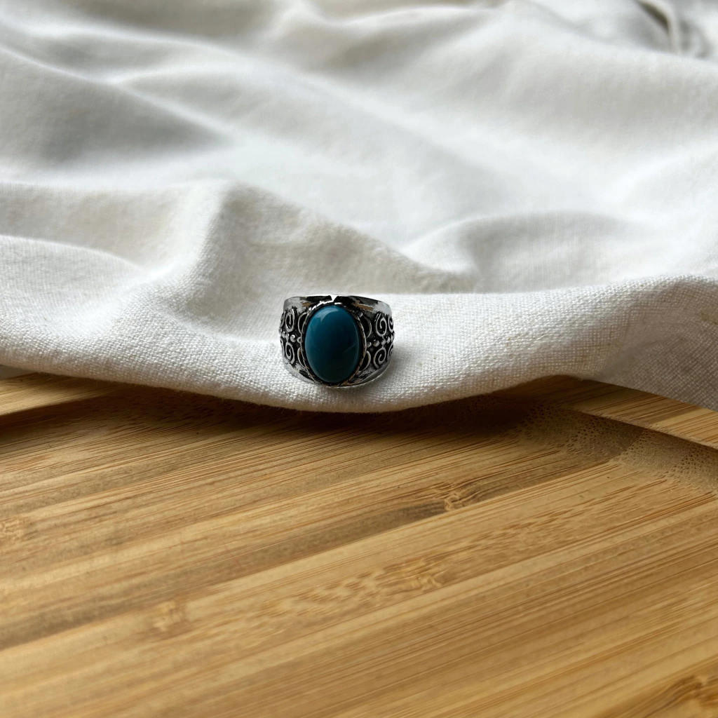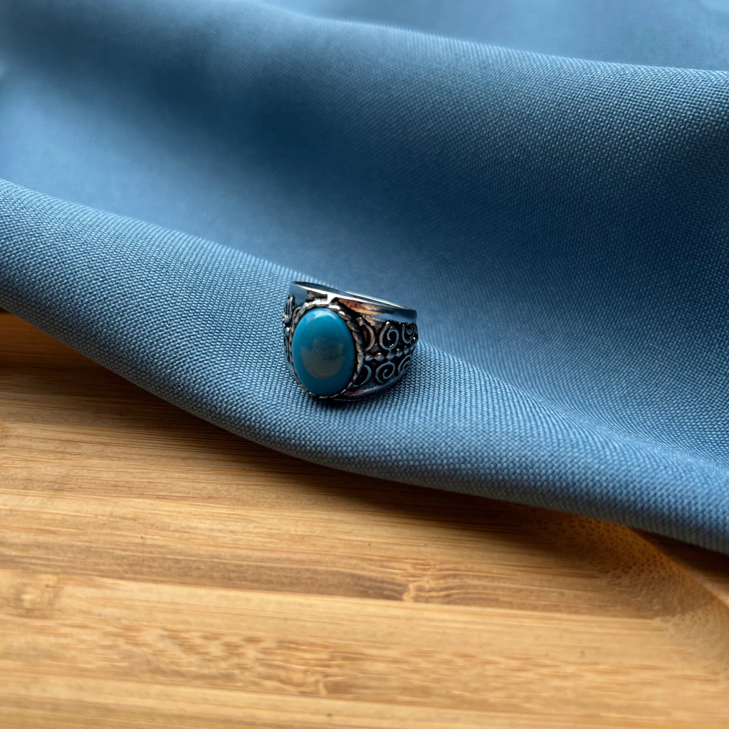 - Material: Aço Inox com pedra de resina na cor azul ágata