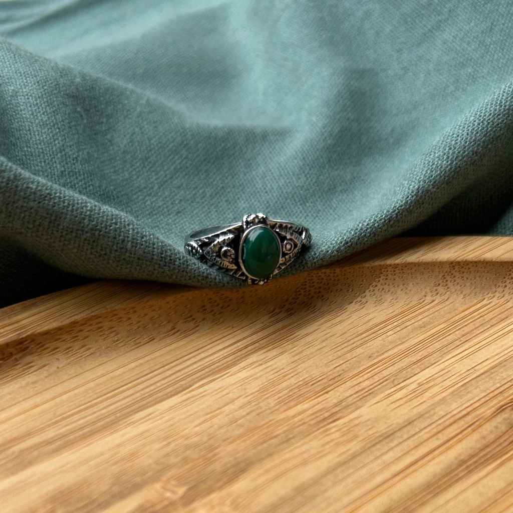 - Material: Aço Inox com pedra de resina na cor verde esmeralda fosca