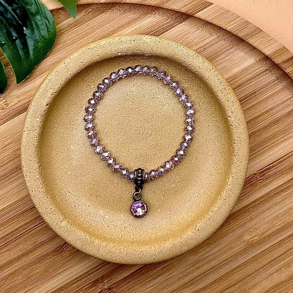 - Material: Metal (ferro), abs, fio de silicone, cristais, contas de resina, strass e tassel